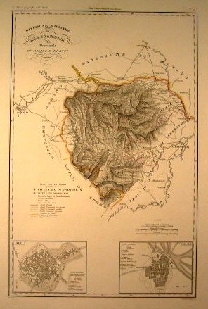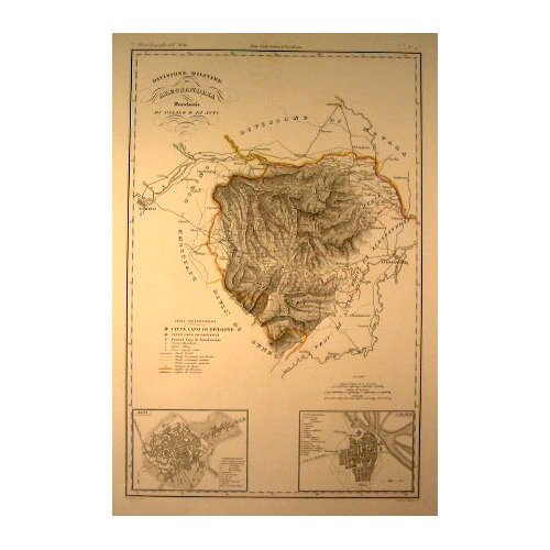 Tratto da ' Atlante geografico dell'Italia ' - Stati sardi Italiani di terraferma di V. Angeli - cm 52 x 34 - - Angeli V. e Stanghi V. inc. - Carta in ottimo stato di conservazione. - Tavola N. 9. Dimensione del foglio 620 mm x 460 mm. Confine di divisione e di provincia acquerellato.