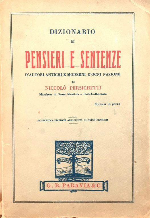Dizionario di Pensieri e Sentenze Paravia 1935 | Rare and modern books | Niccolò Persichetti, ,Niccolò Persichetti
