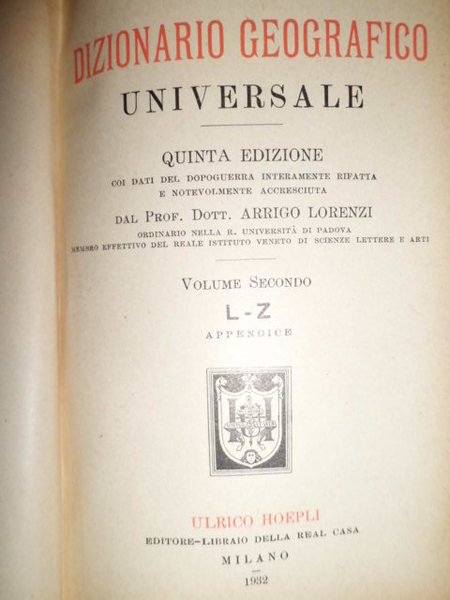 DIZIONARIO GEOGRAFICO UNIVERSALE - MANUALI HOEPLI