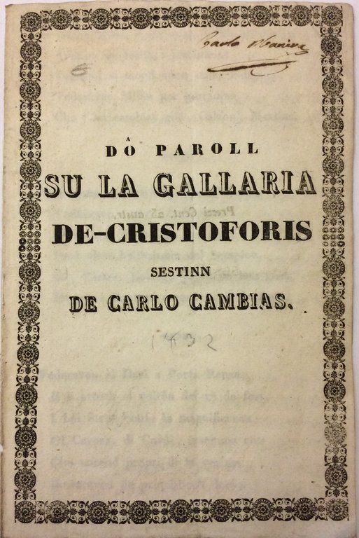 DO PAROLL SU LA GALLARIA DE-CRISTOFORIS. - Sestine.