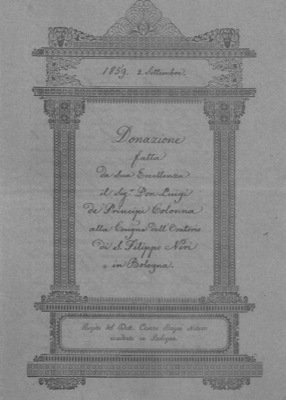 Donazione a vivi di uno stabile posto in via Barberia numero civico 400, parte del Palazzo Zambeccari.
