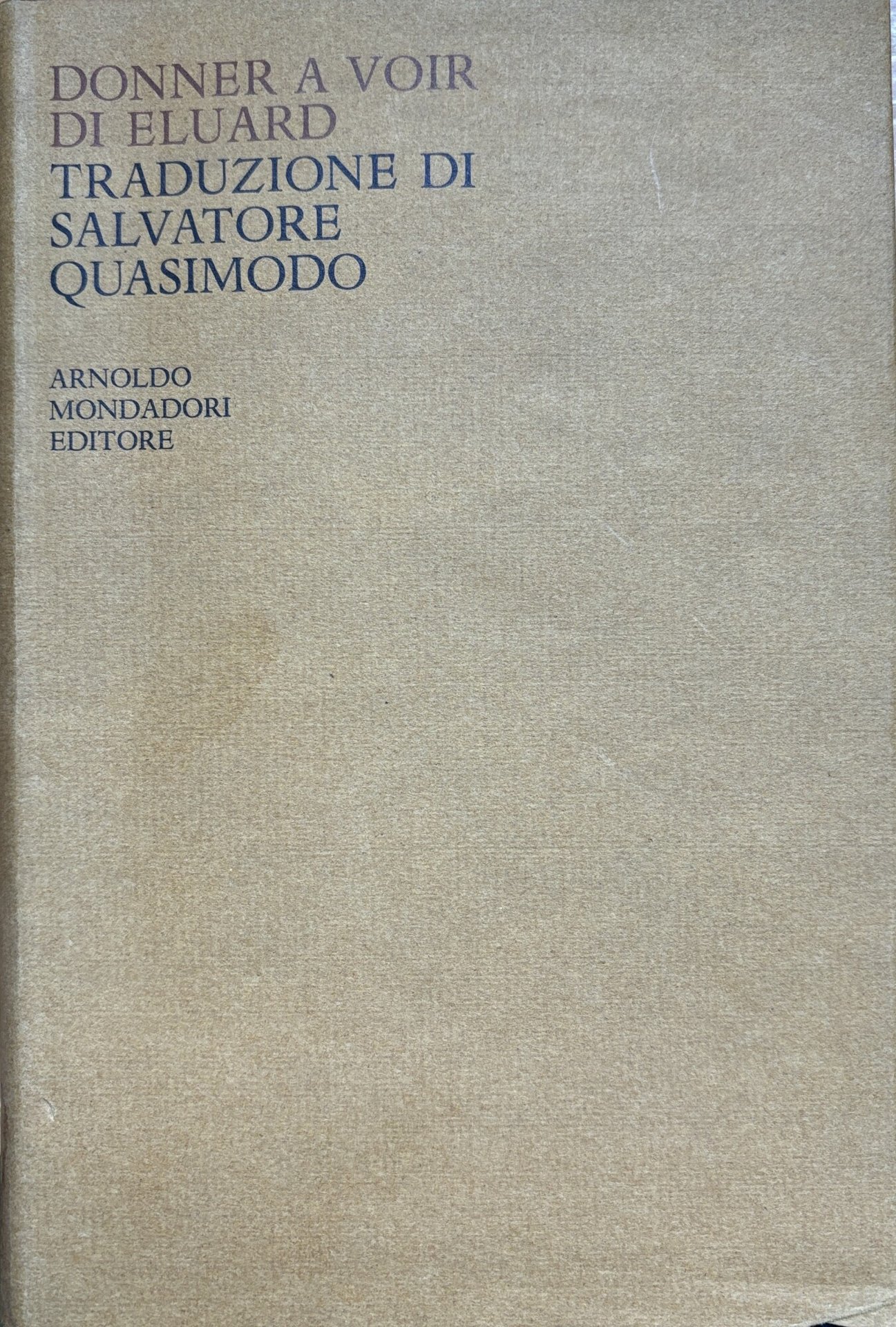 Testo di Paul Eluard tradotto da Salvatore Quasimodo. in ottavo leg. cart. con sovraccoperta pp. 264 Buono (Good) Buon es. con qualche segno del tempo.