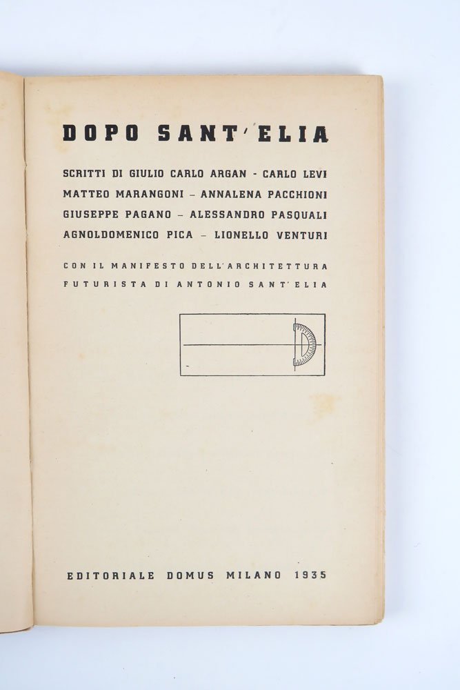 Dopo Sant’ Elia. Scritti di G.C. Argan - Carlo Levi - Matteo Marangoni - Annalena Pacchioni - Giuseppe Pagano - Alessandro Pasquali - Agnoldomenico Pica - Lionello Venturi. Con il manifesto dell’architettura futurista di Antonio Sant’Elia | Rare and modern books | [Sant’Elia] Aa. Vv. (Argan, Levi, Pagano, Pica, Venturi Et Alii)