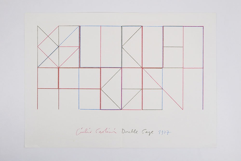 EPHEMERAEdizione originale.Ottimo esemplare. Brossura con minimo segno d’usura agli angoli inferiori dei piatti. Numero 3 della collana «Double Page» voluta da Annemarie Vérna che dà anche il titolo al disegno a colori di Giulio Paolini. Il libro d’artista è realizzato con una sola tavola ripiegata in due parti, per un totale di quattro fogli. Al centro si trova appunto il disegno geometrico a colori dell’artista veneto, accompagnato semplicemente della firma (a stampa) e dal titolo dell’opera. Tiratura non specificata. La serie completa «Double Page» prevedeva 6 numeri dedicati ad artisti diversi, così suddivisi: n. 1 Sol LeWitt (gennaio 1976); n. 2 Giorgio Griffa (dicembre 1976); n. 3 Giulio Paolini (settembre 1977); n.4 Richard Nonas (marzo 1979); n. 5 Richard Tuttle (aprile 1979); n. 6 Marco Gastini (settembre 1980).