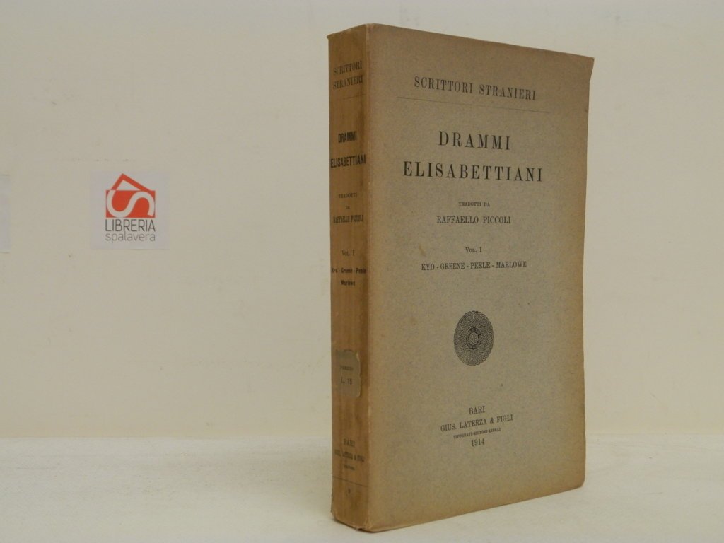 8°, pp. 378, brossura editoriale, ottimo stato di conservazione, ex libbris al contropiatto. Volume ancora a fogli chiusi. Volume I. Kyd - Greene - Peele - Marlowe.. *** TUTTI I NOSTRI LIBRI SONO VISIBILI PREVIO CONTATTO MAIL O TELEFONO NELLA NUOVA SEDE DI MILANO: LIBRERIA COSMOPOLIS, VIA JOMMELLI, 22. ***