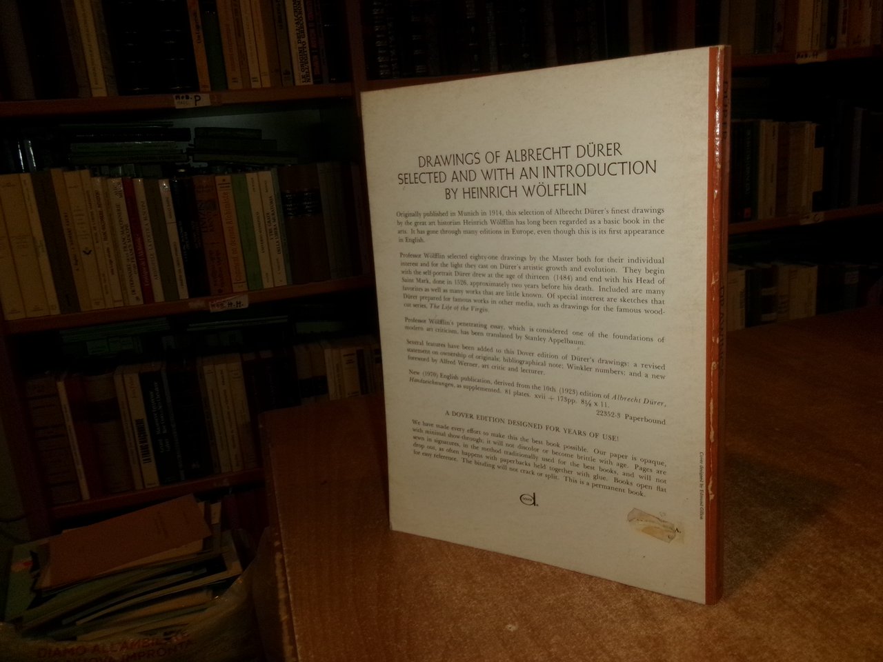 Selected and With an Introduction by Heinrich Wolfflin. Translated by Stanley Appelbaum. Drawings of ALBRECHT DURER. In-4° piccolo, cart. edit. ill. a col. xvii, 17 pp. di testi in inglese con 81 illustrations. Libro usato ma ben conservato. Neg. mob. 14 alto.