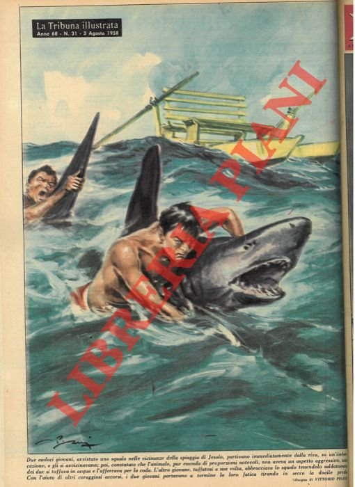Due audaci giovani, avvistato uno squalo nelle vicinanze della spiaggia di Jesolo, partivano immediatamente dalla riva, su un'imbarcazione, e gli s'avvicinavano; poi, constatato che l'animale non aveva un aspetto aggressivo, con l'aiuto di altri coraggiosi accorsi, tiravano in secco la docile preda.