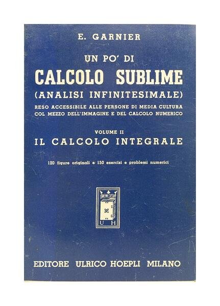 Autore: E. Garnier Titolo: Un pò di calcolo sublime - vol II Il calcolo integrale Edizione: Editore Ulrico Hoepli Milano 1941 Dimensioni: 13,5 x 20 cm c.a. Pagine: 372 Copertina: Brossura Condizioni: Ottime come da foto
