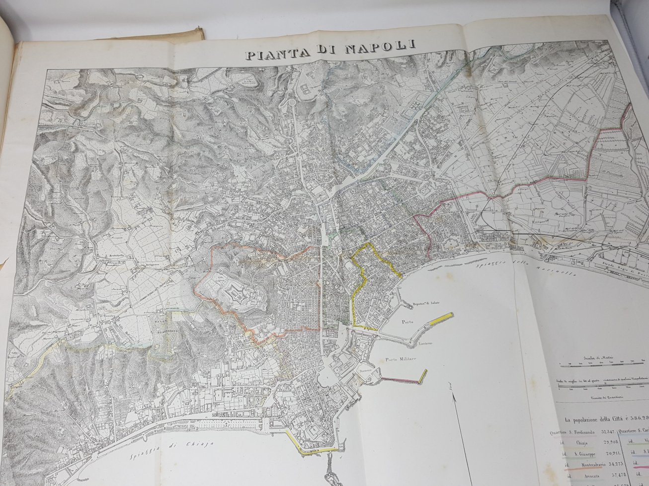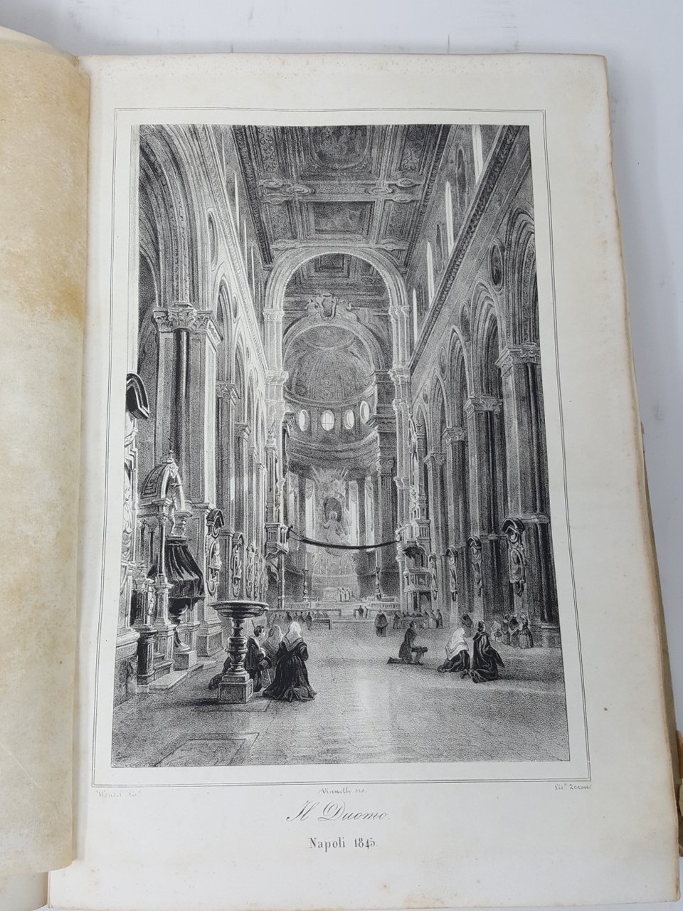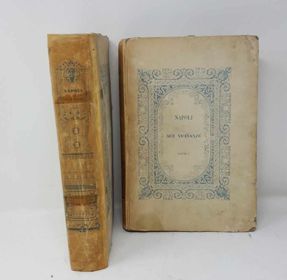 >2 vol. in-4, pp. (12), 542; 602, (2), XXII, (2); legatura in cartone editoriale con bordura in azzurro , abile restauro alla cuffia di uno dei volumi. Con 3 grandi piante topogr. ripieg. (Napoli, dintorni, Pompei) e 25 splendide tavole litografiche protette da velina, disegnate da Achille Vianelli e Giacinto Gigante ed incise da Wenzel e Zezon: vedute generali della città, vie e piazze caratteristiche, chiese e monumenti, e sono tutte animate da personaggi, carrozze, pescatori, soldati, venditori, ecc. Gli scritti, che per l'ampiezza costituiscono delle vere e proprie monografie, riguardano ogni aspetto della vita socio-economica della città e sono opera di G.B. Ajello, Stan. Aloe, Raff. D'Ambra, Mariano D'Ayala, Carlo Bonucci, Ces. Dalbono, Francesco Puoti e Bernardo Quaranta. Bell'esemplare quasi immune dalle usuali fioriture della carta. Fera-Morlicchio II, 346.