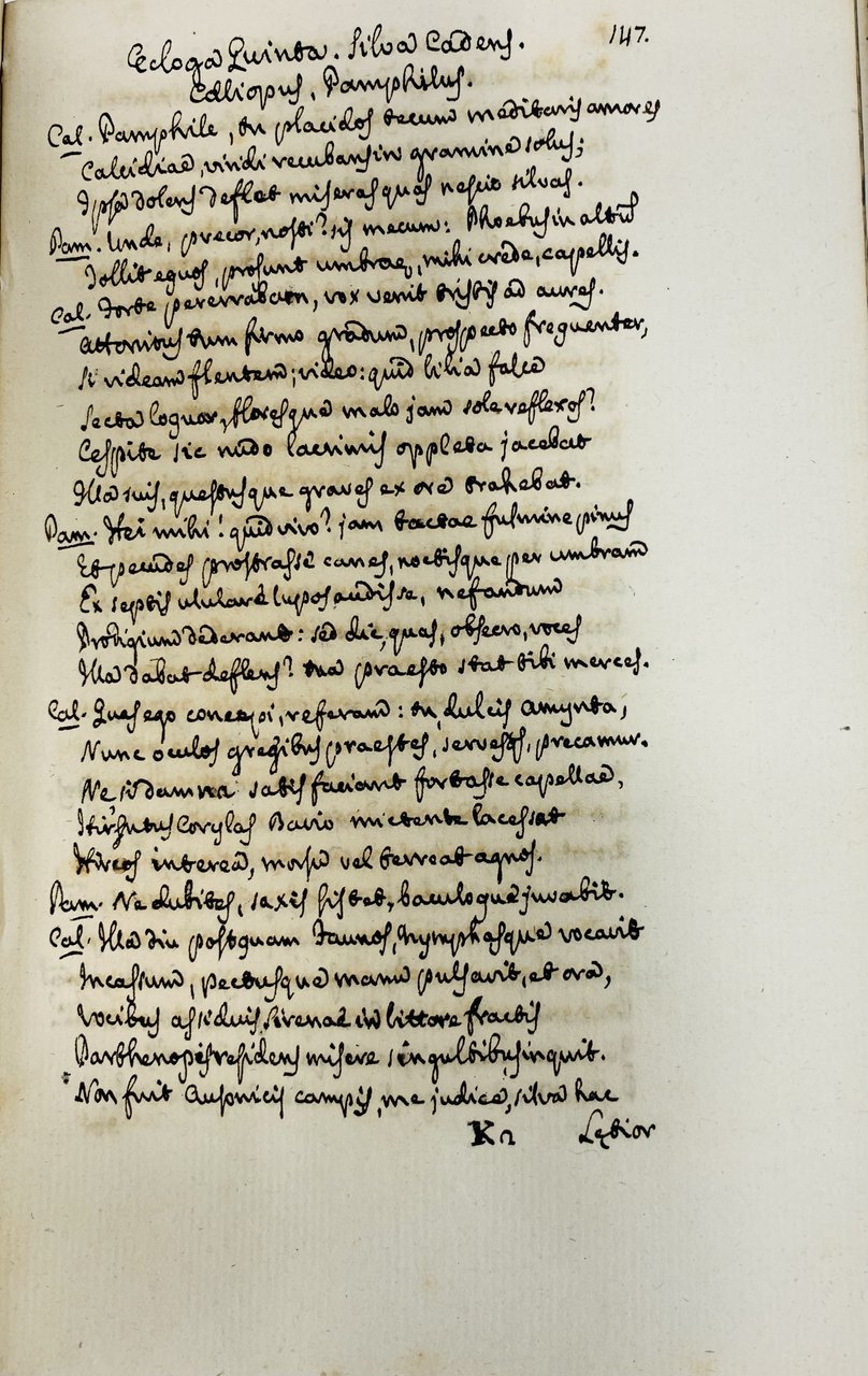 >in-8 (mm 200x130), pp. 302 chiaramente vergate su entrambe le facciate, legatura coeva in mezza pergamena ed angoli, carta marmorizzata a piatti, titolo ms. al dorso. Si tratta della trascrizione autografa che Pietro Guadagnoli, letterato aretino vissuto tra XVIII e XIX secolo, fece dell'edizione edita nel 1504 da Filippo Giunta a Firenze delle Egloghe di vari autori. Il Guadagnoli trascrisse i versi di Pomponio Gaurico, Calpurnius Siculus, Nemesianus, Petrarca, Boccaccio e Giovan Battista Spagnoli mantovano, tralasciando deliberatamente i versi di Virgilio che erano contenuti nell'edizione a stampa. Il Guadagnoli è noto per la composizione di alcuni poemi (''La tavola di Cebete'', ''Le rose''), sonetti ed orazioni. Ex libris applicato al contropiatto con incisione e portante la scritta "Lugdunum Vesia MDCCCLXXXXIII" (riscontrato su vari altri esemplari in commercio o in biblioteche online).