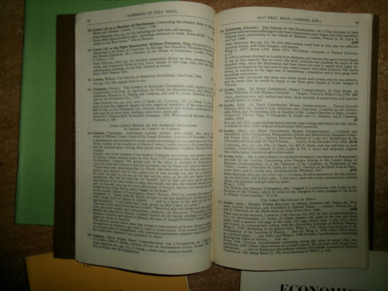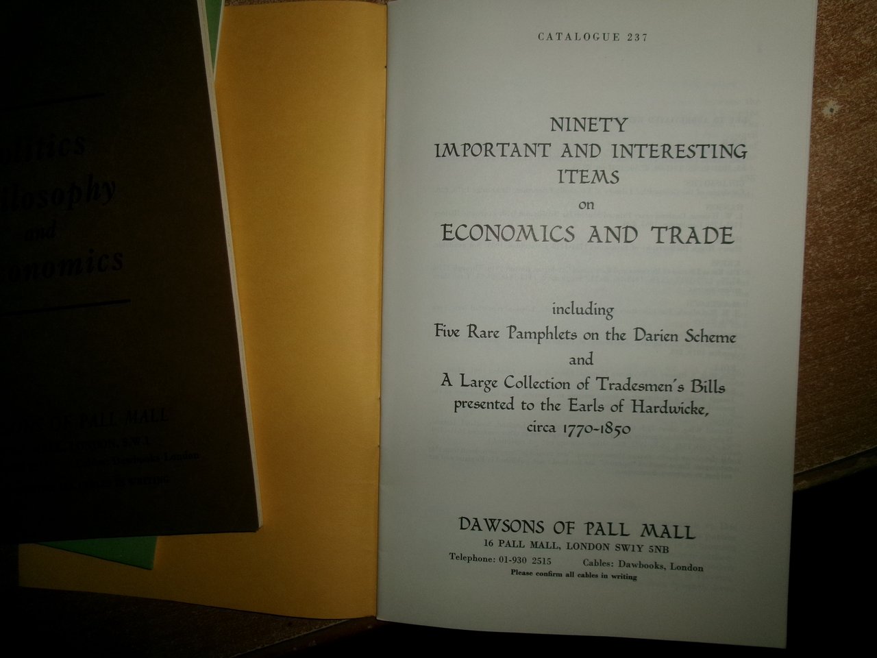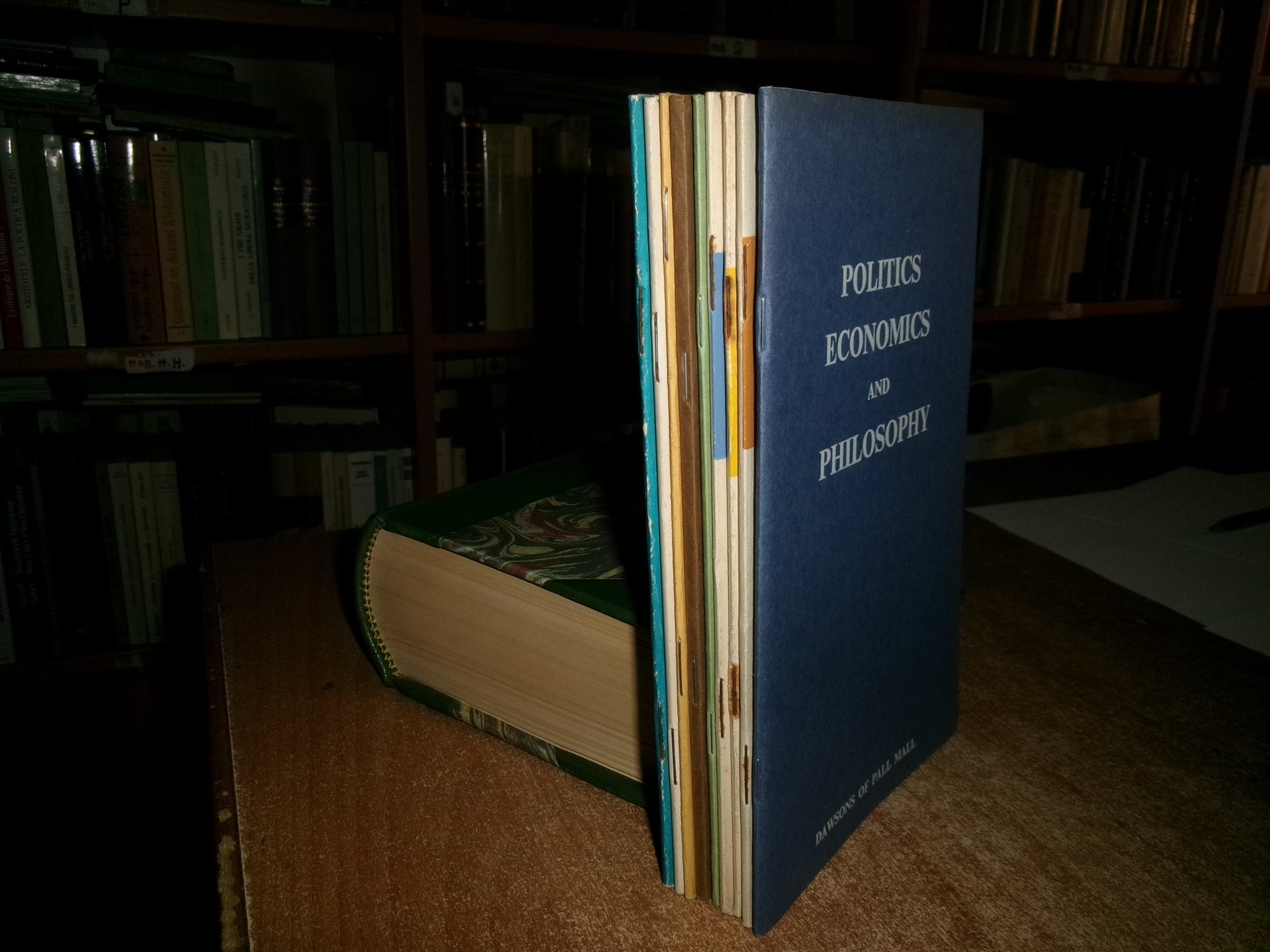 Politics Economics and Philosophy. Economics. Ninety important and Interesting items on Economics and Trade. Economics & Related Subjeets... 9 cataloghi in-16° grande. Accurata descrizione di innumerevoli libri antichi e rari riguardanti materia economica. Ottimo stato con prezzi in Lire sterline. Neg. magazz. mob. grigio entro busta trasp.
