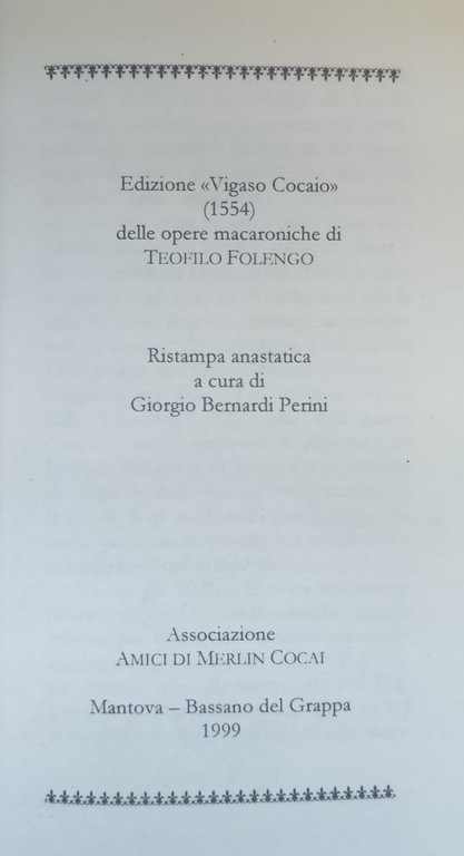 EDIZIONE "VIGASO COCAIO" (1554) DELLE OPERE MACARONICHE