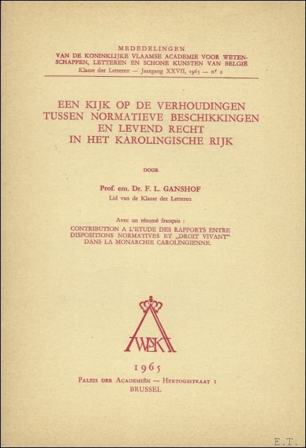 EEN KIJK OP DE VERHOUDINGEN TUSSEN NORMATIEVE BESCHIKKINGEN EN LEVEND RECHT IN HET KAROLINGISCHE RIJK, | Rare and modern books | Ganshof, F.L.