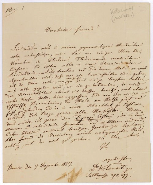 Eigenh. Brief mit U. ("Dr Kolenati").