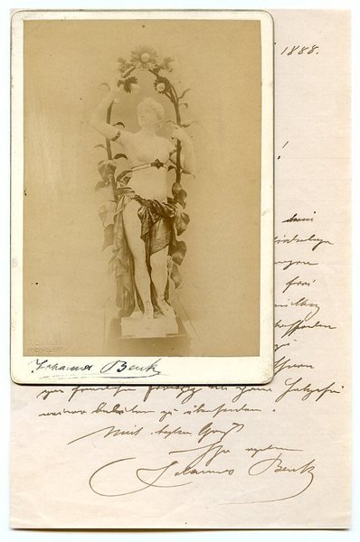 1 S. auf Doppelblatt. Gr.-8vo. Beiliegend eine Kabinettphotographie mit eh. U. (145:100 mm). An einen Herrn von Frankenberg: "Her v. Krupp war so gütig mir mein Honorar für heute in Ihrer Niederlage anzuweisen; da ich aber heute und morgen nicht hier bin, so werde ich so frei sein die Anweisung Montag Vormittag einzukassiren [.]". - Der Sohn eines aus Ungarn gebürtigen Bildhauers studierte an der Wiener Akademie unter Franz Bauer und wurde schon früh mit zahlreichen Modellierpreisen und der Fügerschen Goldmedaille für Komposition ausgezeichnet. Später an der Dresdner Akademie bei Ernst Haehnel, erhielt er für seine erste selbstständige Arbeit, die "Ruhe der heiligen Familie auf der Flucht", eine Goldmedaille und ein zweijähriges Wien-Stipendium; nach dem Empfang des großen Rom-Preises hielt er sich länger in Rom und Florenz auf und war seit 1872 in einem eigenem Atelier in Wien tätig, wo er u. a. Arbeiten für den Kunstpalast der Wiener Weltausstellung, eine kolossale Gruppe der Austria für die Waffenhalle des Wiener Arsenals und für zahlreiche Ringstraßenbauten schuf; er gilt als ein bedeutender Vertreter der Ringstraßenkunst. - Die beiliegende Kabinettphotographie zeigt eine Abbildung seiner Skulptur "Klythia".