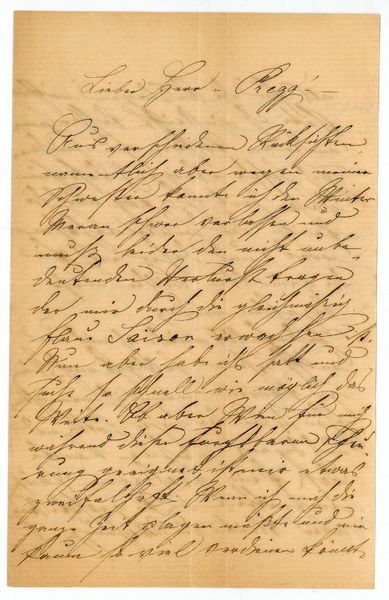 3½ SS. auf Doppelblatt. 8vo. An Herrn v. Pregg: "Aus verschiedenen Rücksichten, namentlich aber wegen meiner Schwester konnte ich den Winter Meran schwer verlassen und mußte leider den nicht unbedeutenden Verlust tragen, der mir durch die gleichmäßig flaue Saison erwachsen ist. Nun aber habe ich's satt und suche so schnell wie möglich das Weite. Ob aber Wien für mich während dieser furchtbaren Theu[e]rung geeignet [ist], ist mir etwas zweifelhaft. Wenn ich mich die ganze Zeit plagen müßte und nie kaum so viel verdienen könnte, als für die Auslagen nöthig, thäte ich vielleicht besser, einen anderen Posten zu suchen. Ich hoffe übrigens, daß H. Löwy auch die Preise der Bilder erhöhen wird und daher auch für die gemalten Bilder ebenso bezahlen wird [.]". - Der aus Neustift bei Brixen stammende Maler verstarb 1886 in Wien.