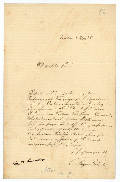 1 S. 8vo. Gestatten Sie mir die ergebene Anfrage, ob Sie geneigt sind, meine nächste Violin-Sonate in Verlag zu nehmen [.].