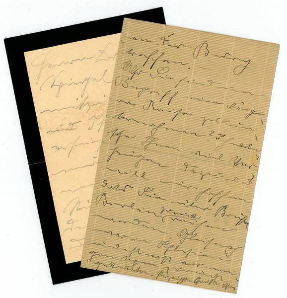 4 SS. auf Doppelblatt. 8vo. An einen Paul: "Tausend Dank für die Gratulation die mich unendlich erfreut hat. Ich komme mir wie neu geboren vor. Ich muß sagen, ich hätte nie geglaubt daß ich so viele gute Freunde hatte. Von Fern und nah kommen Glückwünsche über Glückwünsche. Was hätte ich darum gegeben wenn Sie lieber Paul dabei gewesen wären! Von diesem Trubel können Sie sich keinen Begriff machen. Mindestens langer Applaus bei offener Scene und bei meinen Abgängen […]". - Beiliegend eine Notiz mit eigenh. U. (3 SS. auf gefalt. Doppelblatt, auf Briefpapier mit schwarzem Trauerrand): "Herrn Doktor Spiegel dies mitzutheilen […]" (O. O. u. D.). - Gross studierte Schauspiel in Wien und erhielt im Alter von sechzehn Jahren ihr erstes Engagement am Wiener Carl-Theater, wo sie naive Rollen spielte. Später wechselte sie zum Wiener Stadttheater, 1885 nach Berlin. Am Königlichen Schauspielhaus und seit 1889 am Lessingtheater, wurde sie in sentimentalen Rollen, als elegante Salondame und als Volkskomödiantin zum Publikumsliebling.