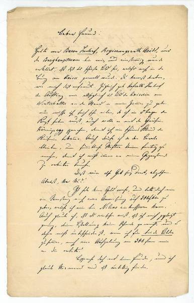 2 SS. 8vo. Heute war Baron Imhof, Regierungsrath Heidl, und der Berghauptmann bei mir, und einstimmig wurde erklärt, daß dies das schönste Bild sei, welches noch in der Burg vom Kaiser gemalt wurde. Du kannst denken, wie mich dies erfreut. Zugleich gab Hofrath Imhof den Auftrag mir allsogleich das Bild der Kaiserin von Winterhalter an die Wand in mein Zimmer zu geben; nur müsse ich mich sehr eilen, da ich in 5 Tagen den Kopf haben muß […]. - Der in Wien geborene Künstler war seit 1837 als freischaffender Künstler tätig. "Als Kommandant der akademischen Legion beteiligte Aigner sich an der Revolution von 1848, wurde nach seiner Gefangennahme zum Tod verurteilt, schließlich jedoch begnadigt. Er schloß sich dem Kreis um Carl Rahl an und war seit 1864 Mitglied des Künstlerhauses in Wien. Einen Auftrag des Kaisers Maximilian von Mexiko, Kopien von Werken des Belvedere für die mexikanische Nationalgalerie herzustellen, brach Aigner ab (1867/68). 1867-69 malte er Stifterporträts für den Saal des neuen Künstlerhauses in Wien" (DBE). "Unter der Menge seiner Bildnisse sind die interessantesten eine Skizze von Lenau und das Portrait des russischen Generals v. Danielos, beide im Irrenhaus zu Döbling angefertigt, wo sich beide Personen in Pflege befanden" (Thieme/Becker I, 148).