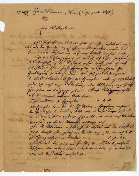 2 SS. auf gefalt. Doppelblatt. 4to. Bestätigt dem Kunsthändler Johann Sigmund Bermann (1794-1846) den Erhalt einer Zuschrift "worin Sie mir die Gründe die ich ehren muß angeben, warum Sie keine directe Bestellung auf mein Blatt machen wollen […]". - Neben einigen Zeichnungen schuf Amsler ausschließlich Kupferstiche, vor allem nach Werken von Raffael, Thorvaldsen und Schwanthaler.