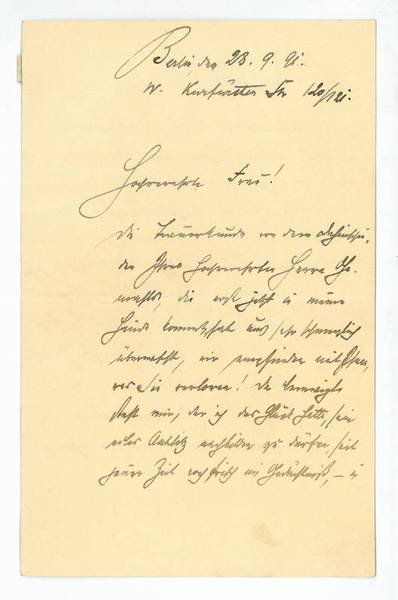 3 SS. auf gefalt. Doppelblatt. 8vo. Spricht einer namentlich nicht genannten Adressatin sein Beileid aus: "Die Trauerkunde von dem Dahinscheiden Ihres hochverehrten Herrn Gemahls, die erst jetzt in meine Hände kommt, hat uns sehr schmerzlich überrascht, wir empfinden mit Ihnen, was Sie verloren! […]". - Hildebrand war einige Jahre praktisch im Baufach tätig, bevor er sich der Kunst zuwandte und 1853 Schüler in den Ateliers August von Kloebers und Carl Steffecks in Berlin wurde. 1860 ging er zu einem einjährigen Studienaufenthalt nach Paris, arbeitete nach seiner Rückkehr wieder im Atelier Steffecks und übersiedelte 1875 nach Karlsruhe, wo er als Prof. an der Kunstschule unterrichtete.