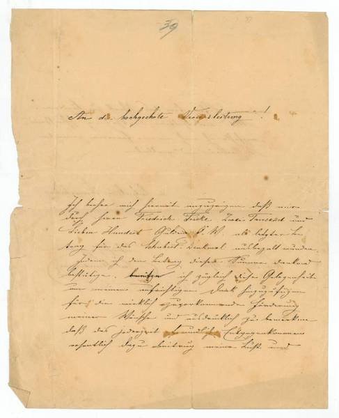 1¾ SS. 4to. An eine Vereinsleitung: "Ich beehre mich hiermit anzuzeigen, daß mir durch Herrn Friedrich Fricke Zwei Tausend und Sieben Hundert Gulden Ö. W. als letzter Betrag für das Schubert-Denkmal ausbezahlt wurden. Indem ich den Betrag [.] dieser Summe dankend bestätige, benütze ich zugleich diese Gelegenheit um meinen aufrichtigen Dank hinzuzufügen für die Wirklich zuvorkommende Förderung meiner Wünsche und ausdrücklich zu bemerken daß das jederzeit freundliche Entgegenkommen wesentlich dazu beitrug meine Lust und meinen Eifer für das Werk zu fördern [.]". - Carl Kundmann studierte in Wien und bei Ernst Hähnel in Dresden, lebte als Stipendiat in Rom und schuf in öffentlichem Auftrag zahlreiche Statuen und Denkmäler, darunter ein Schubert-Denkmal (1872). Von 1872 bis 1909 war Kundmann Professor an der allgemeinen Bildhauerschule sowie mehrmals Rektor der Wiener Akademie der bildenden Künste und unterhielt 1873-1909 eine Spezialschule für Bildhauerei in Wien. Neben Denkmälern und Portraitstatuen schuf Kundmann einen Großteil der plastischen Ausstattung der Ringstraßenarchitektur, darunter für beide Hofmuseen, das Burgtheater, das Rathaus und die Neue Hofburg. Vgl. Thieme-B. XXII, 103f und Czeike III, 635. - Etwas fleckig und mit starken Randläsuren sowie Falteinrissen.