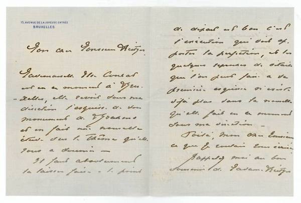 3 SS. auf Doppelblatt. 8vo. Mit eh. adr. Kuvert. In französischer Sprache an einen Monsieur Reitzer in Wien, mglw. der Jurist Josef Reitzer. - Auf Briefpapier mit gedr. Adresse.