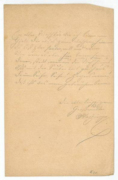 1 S. auf gefalt. Doppelblatt. 8vo. Beiliegend Zeitungsausschnitt. Ein alter Waschbär wie ich bin - | Giebt dir etwas zum Waschen hin | Du bist zwar sauber, nett und rein | Wie man es eben heuer kann sein | Denn, steckt man nur die Nas' hinaus | Ists mit der Sauberkeit gleich aus | Drum Seife, Seife! Herzensmann! | Daß ists was man gebrauchen kann! - Etwas knittrig. - Amalie Haizinger debütierte 1810 in Karlsruhe, gab seit 1817 Gastspiele (u. a. in Mannheim, Berlin und Weimar) und kam 1825 erstmals ans Wiener Burgtheater. "Tourneen führten sie u. a. nach Paris, London und St. Petersburg. 1846-75 gehörte sie dem Ensemble des Burgtheaters an. Haizinger glänzte als junge Frau in naiven, sentimentalen Rollen, u. a. als Luise in Schillers 'Kabale und Liebe', später als Marthe in Goethes 'Faust'" (DBE). 1836 erschienen ihre "Erinnerungsblätter".