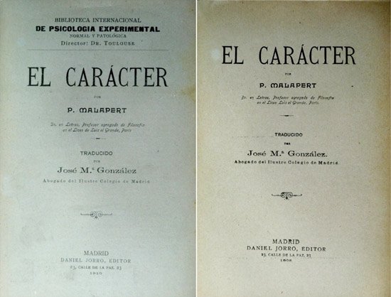 El Carácter. Traducido por José María González. | Rare and modern books | Malapert, P.