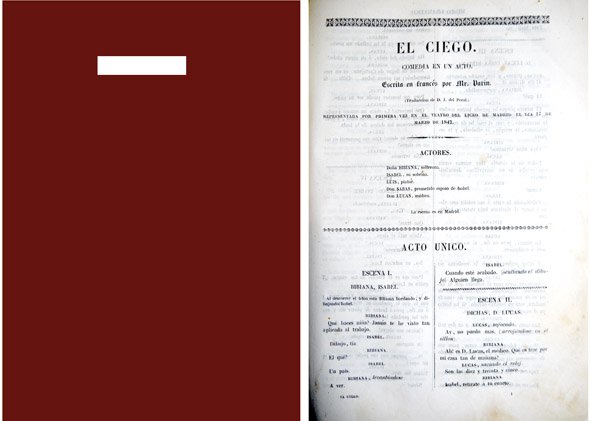 El Ciego. Comedia en un acto. Traducción de J. del Peral. | Rare and modern books | Varin (Seudónimo De Charles Voirin).