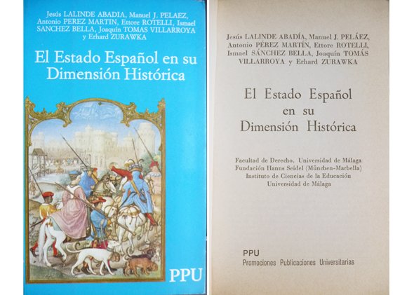 El Estado Español en su dimensión histórica. Prólogo de Manuel J. Peláez. Textos de Jesús Lalinde Abadía, Manuel J. Peláez, Antonio Pérez Martín, Ettore Rotelli, Ismael Sánchez Bella, Joaquín Tomás Villarroya y Erhard Zurawka.