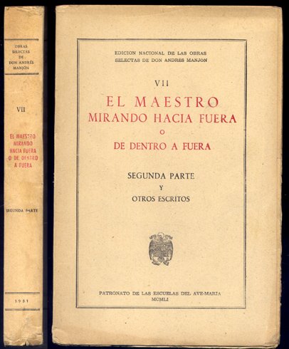 El Maestro mirando hacia fuera ó de dentro a fuera. Segunda Parte. Y otros escritos. | Rare and modern books | Manjón Y Manjón, Andrés.