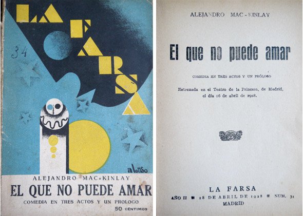 Madrid, La Farsa, 1928. 4to.; 63 pp., Con viñetas entre el texto y portada de Alonso. Cubiertas originales de Alonso, fatigadas.