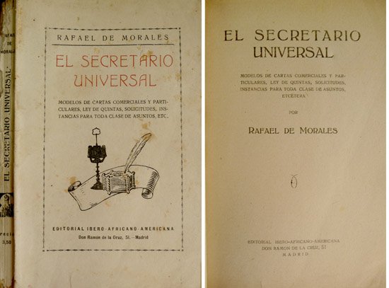 El Secretario Universal. Modelos de cartas comerciales y particulares, Ley de Quintas, solicitudes, instancias para toda clase de asuntos, etc. | Rare and modern books | Morales, Rafael De.