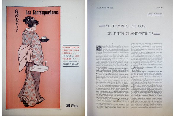 Madrid, Los Contemporáneos, 1910. Folio; 20 pp. sin numerar, impresas a doble columna y con ilustraciones de Romero Calvet. Cubiertas originales.