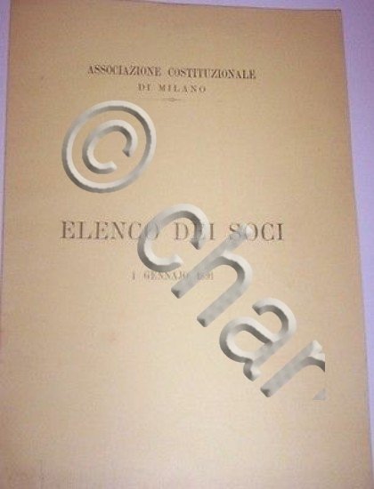 Milano - Elenco Soci Associazione Costituzionale di Milano 1 Gennaio 1891 - 1^ ed. 1891, pp. 16 compreso di elenco numerico ed alfabetico dei soci di quell'anno. L'opuscolo è una rarità di storia locale.Per appassionati, studiosi e collezionisti