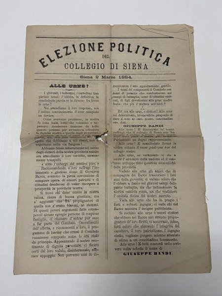 Elezione Politica del Collegio di Siena 2 marzo 1884 per Giuseppe Bandi
