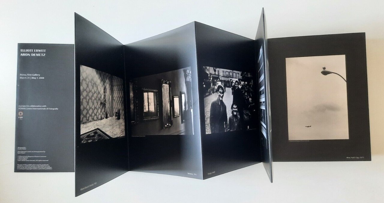 ELIOTT ERWIN ARON DEMETZ ROMA FIRST GALLERY 2008In 8°, pag. n.n, legatura editoriale a leporello, copertina illustrata, ill. a colori.In ottime condizioni, lievissimi segni alla copertina.