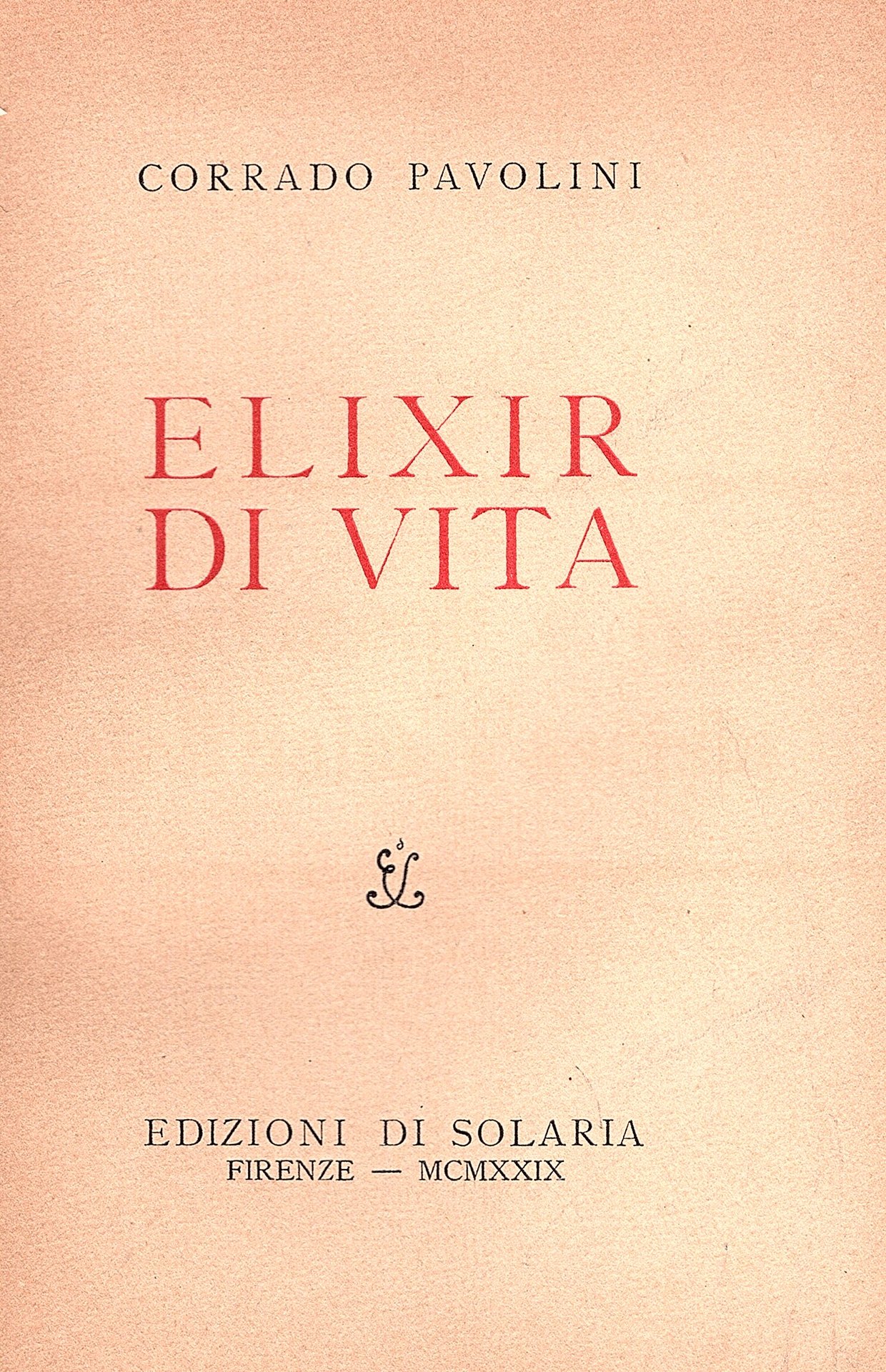 In-8°, pp. 126 (2), brossura editoriale con titoli in nero e rosso al dorso e al piatto anteriore con fregio tipografico di collana. Edizioni di Solaria, quaderno quattordicesimo. Ottimo esemplare (n° 29/200) entro velina. Prima edizione. Cfr. Gambetti-Vezzosi, p. 664.