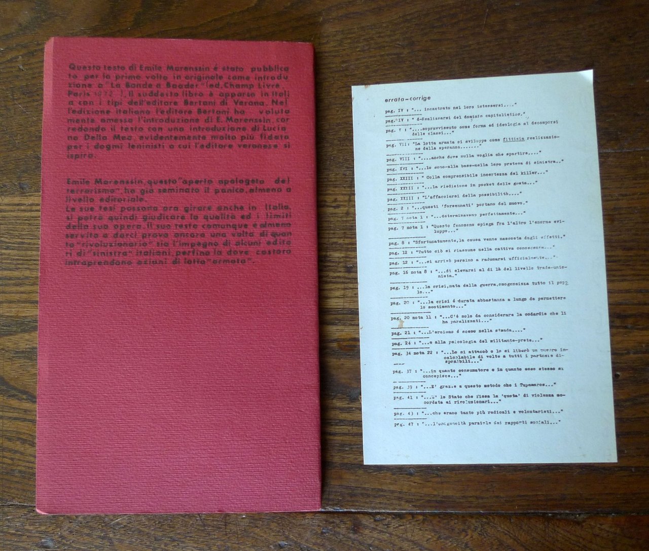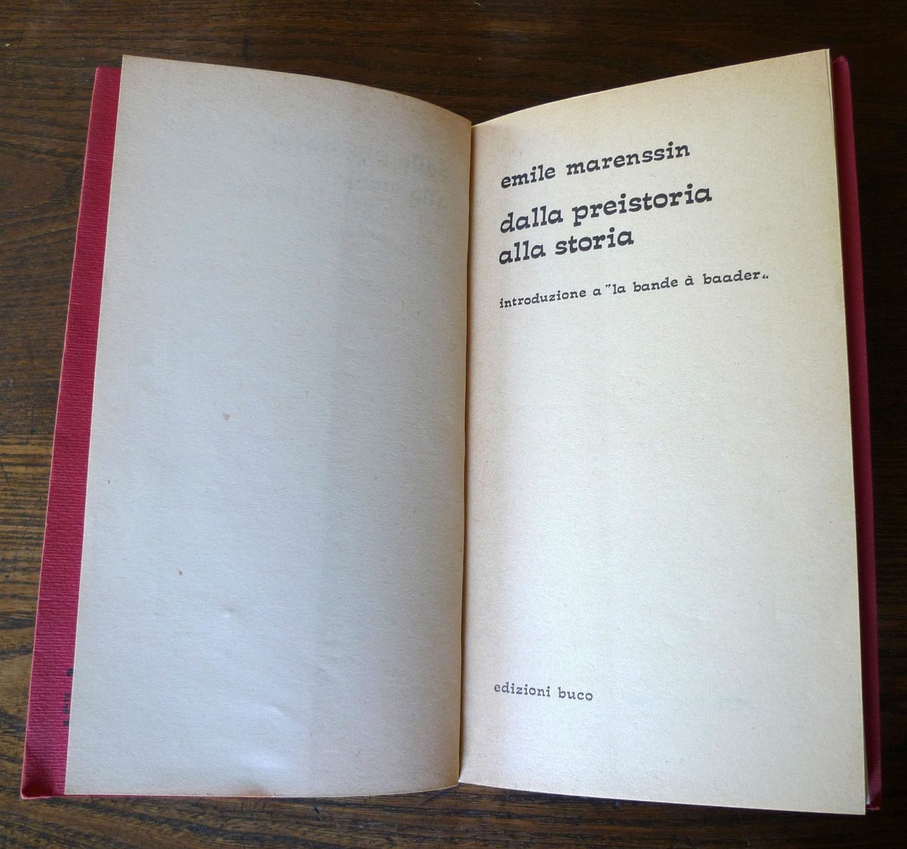 Emile Marenssin,DALLA PREISTORIA ALLA STORIA.Introduzione a "La bande à baader".Edizioni Buco, Bari 1972,brossura, 21,5x12,5 cm., pp.80,è conservato il foglietto di "errata corrige",peso: g.300cod.10175CONDIZIONI DEL LIBRO: buone,pagine ingiallite e con macchie
