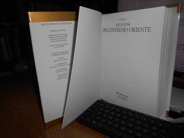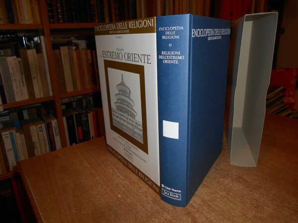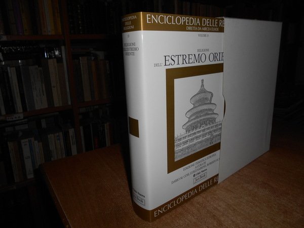 Diretta da Mircea Eliade. Milano/Roma, Jaca Book/Città Nuova, 2000. ENCICLOPEDIA DELLE RELIGIONI. RELIGIONI dell' Estremo Oriente Vol 13. In-4°, cartonato edit. azzurro con titoli e sovracopertina. viii, 613 pp. con alcune illustrazioni n.t. Come nuovo con astuccio in cartoncino muto. Uff. stanzetta mob. a destra.
