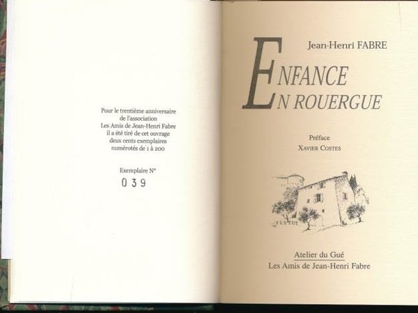 Atelier du Gué 2002 Atelier du Gué, 2002. Ensemble de 4 titres de Jean-Henri Fabre. In-12 relié demi-basane verte, titre doré en dos et semis de fourmis dorées, guirlande dorée en tête et en queue, couvertures conservées. Le premier titre porte une justification de tirage à 200 exemplaires numérotés, celui ci N° 39. Imprimé sur beau papier. La charmante reliure a été réalisée par Alain Koren, Atelier In-Folio à Millau. Très bel état.