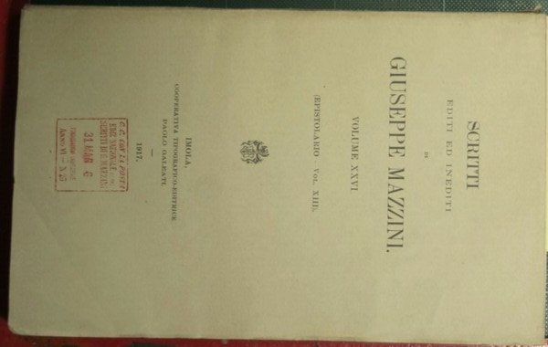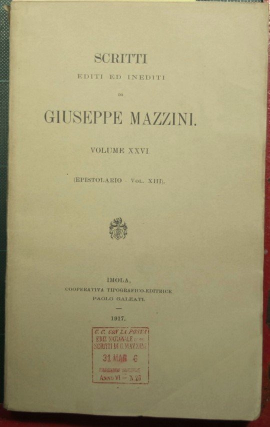Collana Scritti editi ed inediti di Giuseppe Mazzini. N. 26 - in 8° - pp.XVIII + 525 - Brossura editoriale - Tavole in b/n fuori testo - Edizione nazionale degli scritti di Giuseppe Mazzini