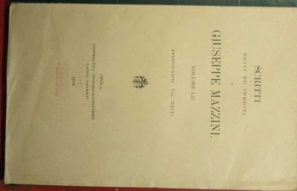 Collana Scritti editi ed inediti di Giuseppe Mazzini. N. 52 - in 8° - pp.VI + 356 - Brossura editoriale - Ritratto in b/n fuori testo - Edizione nazionale degli scritti di Giuseppe Mazzini