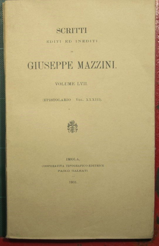 Collana Scritti editi ed inediti di Giuseppe Mazzini. N. 57 - in 8° - pp.VI + 385 - Brossura editoriale - Ritratto in b/n fuori testo - Volume intonso - Edizione nazionale degli scritti di Giuseppe Mazzini