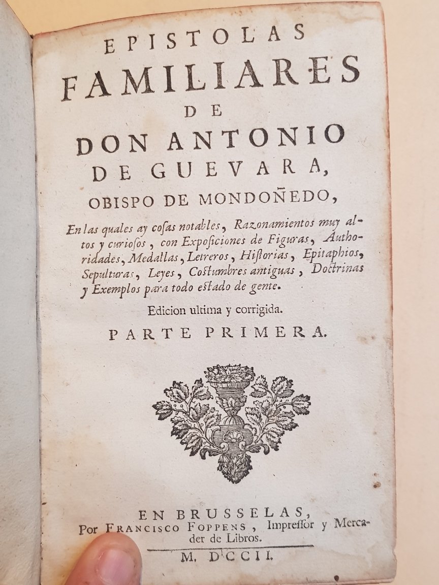Epistolas familiares de Don Antonio De Guevara obispo de mondonedo. Edicion ultima y corrigias Primera e secunda parte.