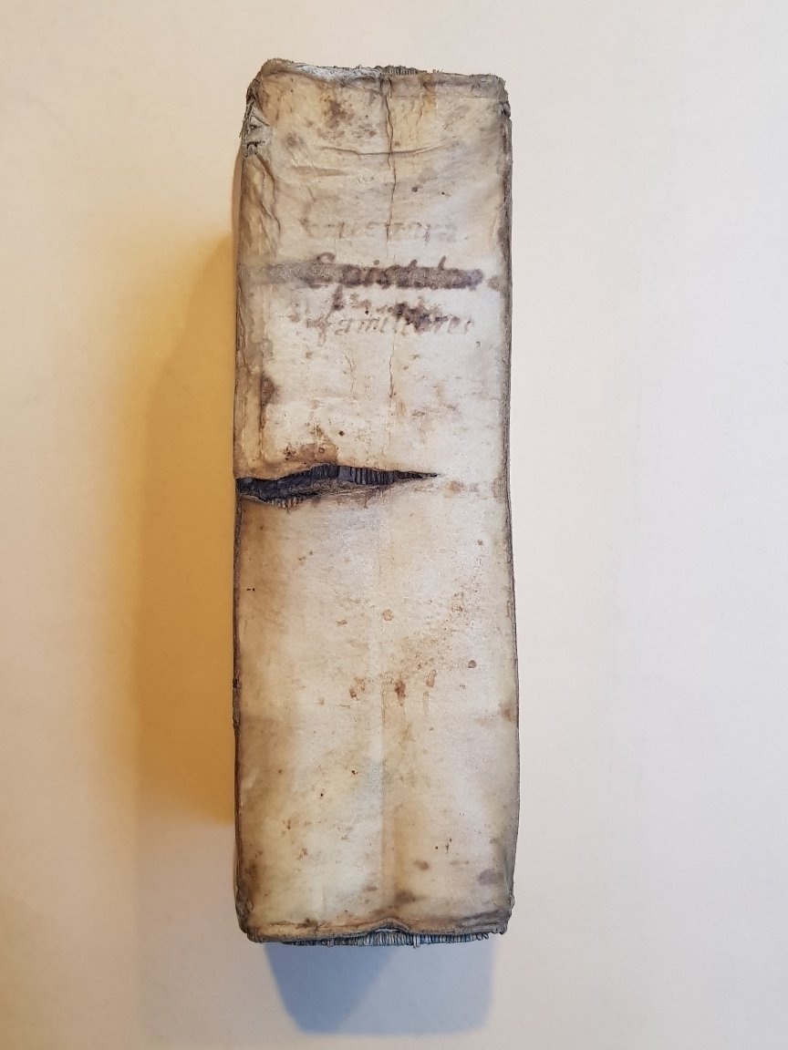 In-16° (160 x 100 mm.), pp. 400, (8); 383, (6), legatura coeva in piena pergamena coeva con unghiature, titolo manoscritto al dorso, tagli rossi. Piccola mancanza dovuta ad un taglio al centro del dorso.