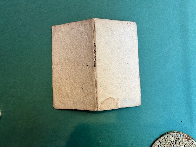 In-24°(140 x 75 mm), pp.48, titolo in cornice xilografica, marca tipografica, cartonatura rustica coeva con titolo manoscrittoal dorso. Piccola gora di umidità al margine inferiore del piatto superiore. Ottimo stato di conservazione. Stampato dal fondatore della nota tipografia veneziana, Alessandro Zatta, che iniziò a stampare nel 1656 e collocato in quell’anno tra i «poveri» dell’arte. Rara placchetta di Angelo Maria del Priuli appartenente al ramo di San Barnaba fece parte del Consiglio dei dieci. Ebbe altri due fratelli maggiormente noti , Luigi che intraprese la carriera religiosa divenendo Cardinale e facilitando in questo modo il fratello Giovanni che divenne ambasciatore a Vienna e poi procuratore di San Marco. I fratelli pur sposandosi non ebbero figli e quindi il loro ramo si estinse.