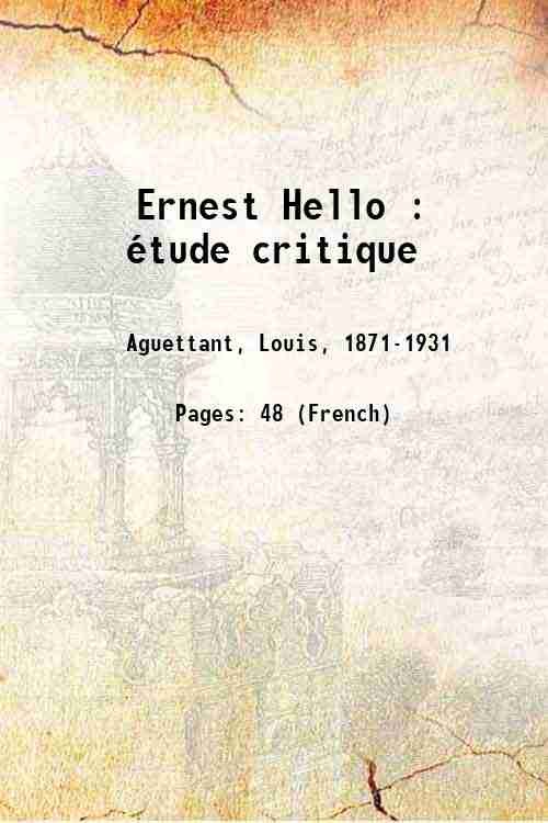 Ernest Hello : Ètude critique 1897