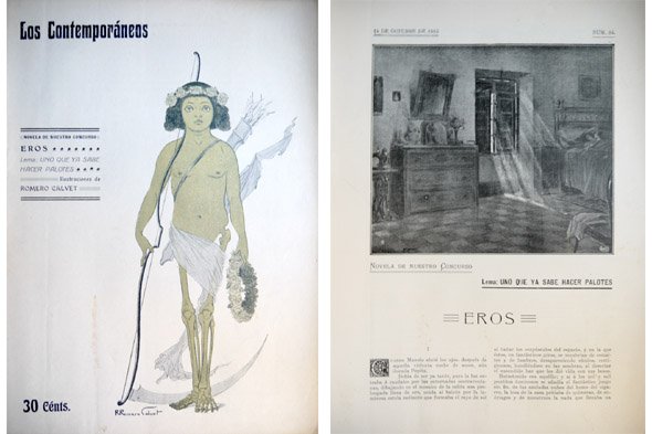 Madrid, Los Contemporáneos, 1910. Folio.; 20 pp., sin numerar, impresos a doble columna, con ilustraciones de Romero Calvet. Cubiertas originales.